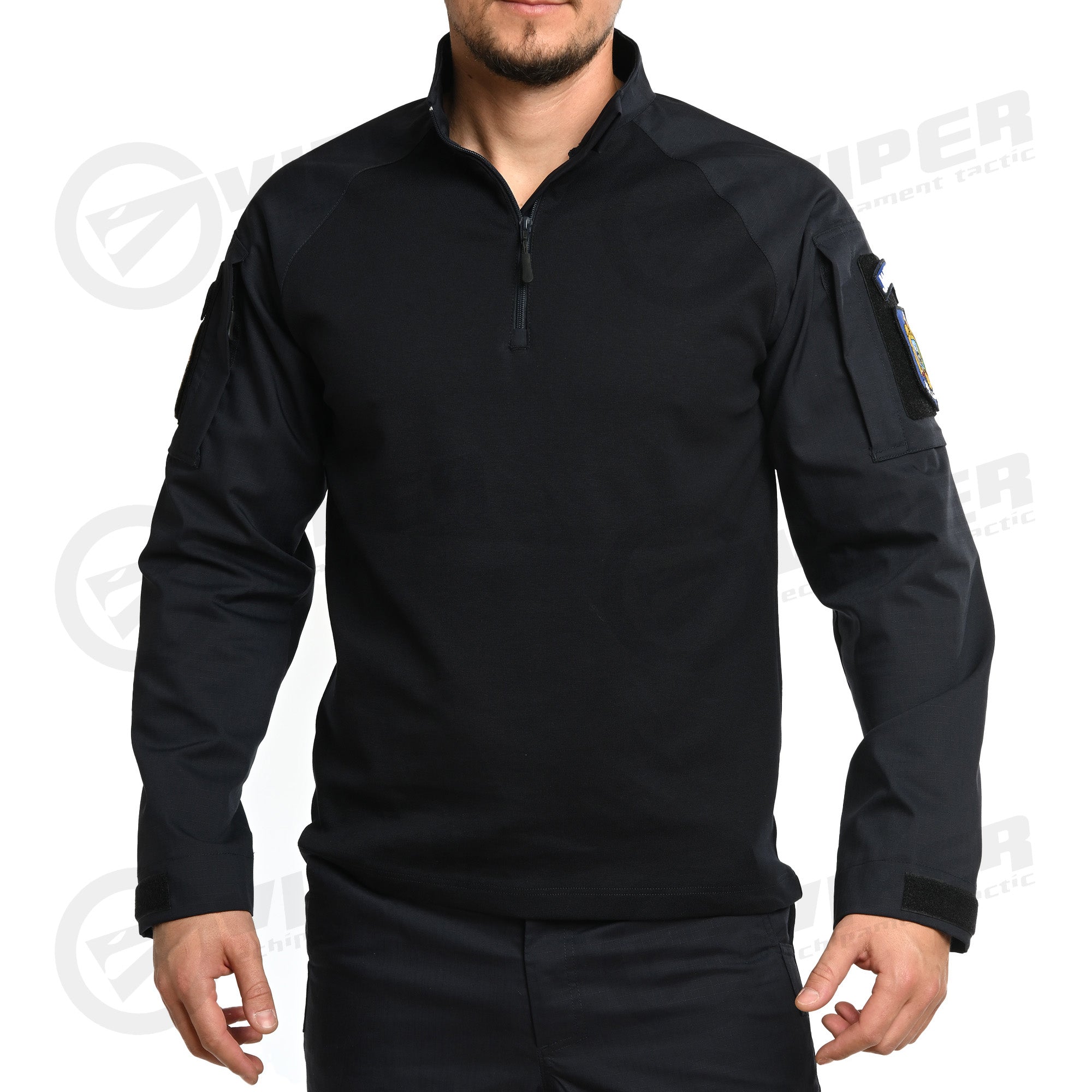 In timp ce corpul este din bumbac si elastan, usor si respirabil, manecile sunt din material rezistent, fiind prevazute cu buzunare asigurate cu fermoar in partea superioara, pe care gaseste aplicat puf pentru atasarea emblemelor specifice, iar in zona incheieturii, sunt reglabile cu puf si scai.